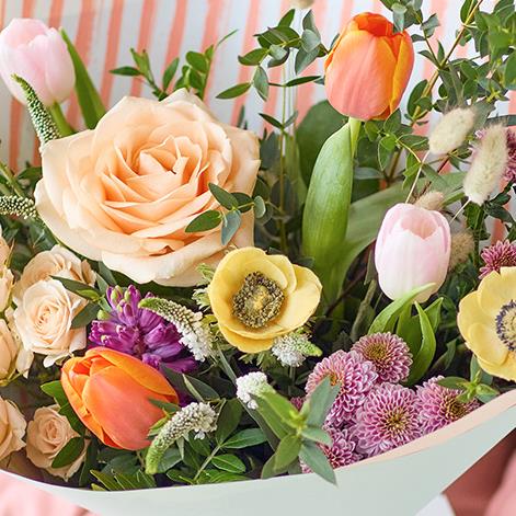 A gorgeous on trend bouquet without any lilies, crafted by hand in a fresh, modern style.
