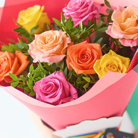 A magnificent assortment of roses in beautiful colours. A romantic rainbow.